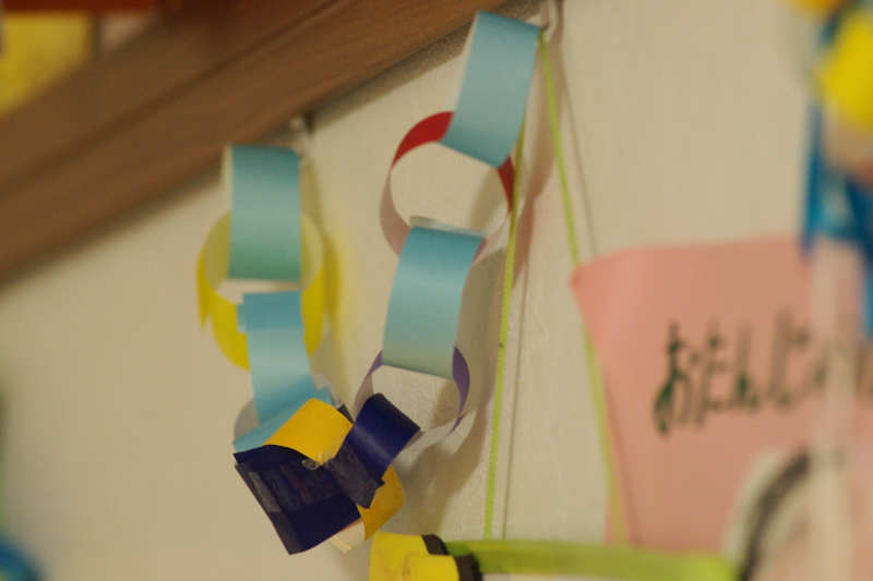 本日、ウン回目の誕生日だったわけですが、娘が作ってくれた飾り。不揃いで短いですが、リビングに3本、飾っておいてくれました。部屋に入ると、「ごめんね、まだ途中なんだけど…」といって4本目を一生懸命に作っている姿に、感無量…。写真は、暗い室内、無理してA300/2.8Gを使用してみました。
