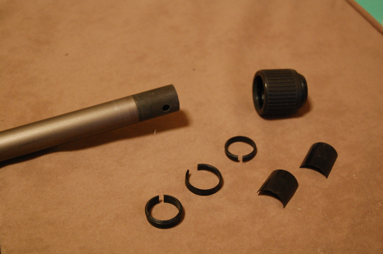 また、ナットの中で、内部の足をロックする3分割されたスリーブは、一部が上手くはまっていなかったり、斜めになってしまっている状態で、これにより脚の長さが違う状態になっていました。