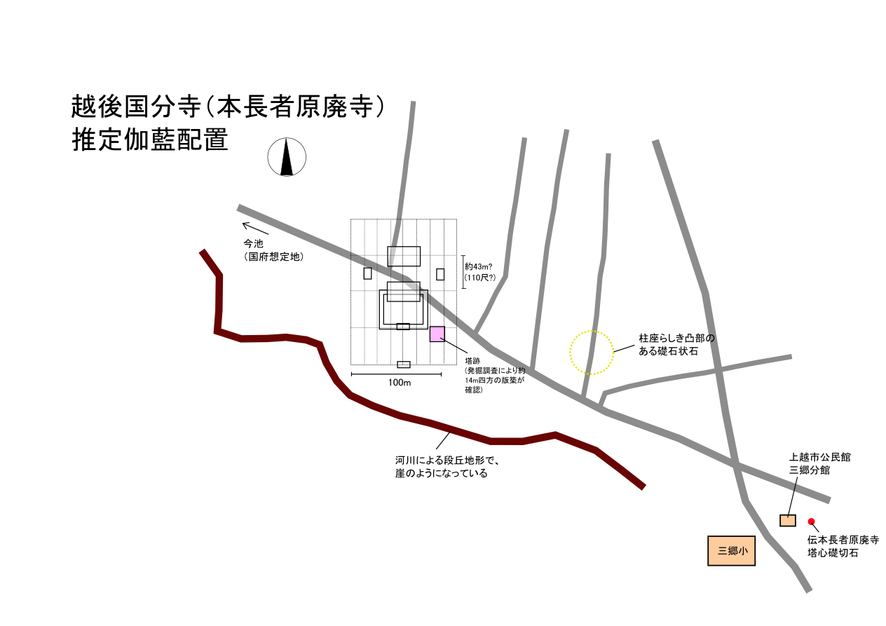 本長者原廃寺の塔の規模は甲斐国分寺よりもやや小さいようですが、金堂、講堂等はほぼ同規模だったのではないでしょうか。