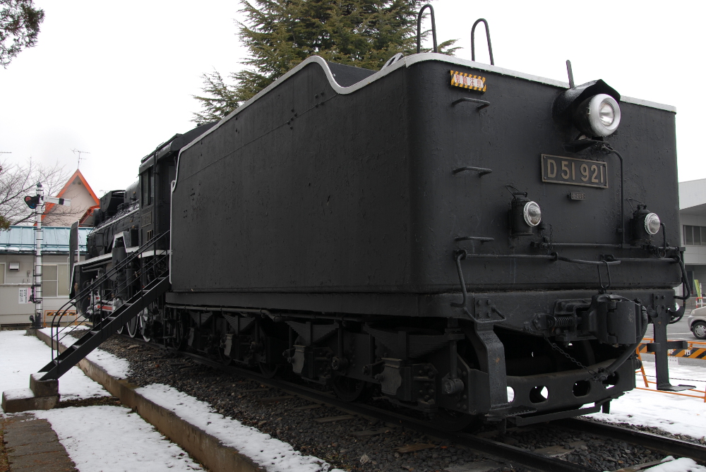篠ノ井市民会館に保存されている、D51 921です。状態は比較的良いようです。にわかファンなのであまり詳しくないのですが、最近、主要パーツに車体番号の刻印があることを知り、本車両の刻印も探してみました。車体左側(公式側)が、駐車場と反対なので、こちらの方が刻印がありそう、と探してみましたが、一箇所、かろうじて刻印があることがわかるものの、なんと打ってあるのか分かりませんでした。次に駐車場側の右側(非公式側)を探してみると、こちらは数箇所判読でき、D51 921と打ってあり、この車両はD51 921に間違いないようです。